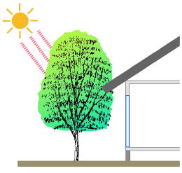 夏期の日射遮へい効果(建物南面で落葉樹を使う)