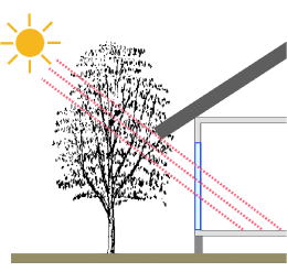 冬期の日射を促す効果(建物南面で落葉樹を使う)