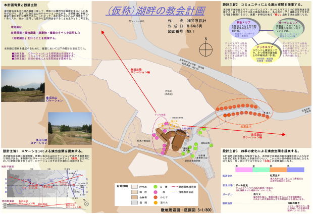2004年に南魚沼の自然豊かな山の森林の中に、結婚式用の教会&カフェをつくる計画・各開発申請等・基本設計をしました。とっても自然豊かな山麓の森林の中で、脇に小さな湖があり、湖から魚沼三山が見渡せるという、ロケーションも抜群な所でした。まさしく、大自然を満喫できる場所でした。このような自然豊かな場所は、建築をするのに法律上・行政上の厳しい制限やたくさんの許可が必要な場所で、建物を建てることができる「敷地」にするまでに、たくさんの時間を要する場所です。法律上・行政上において建てるのが難しいからこそ、自然が守られているとも言えます。